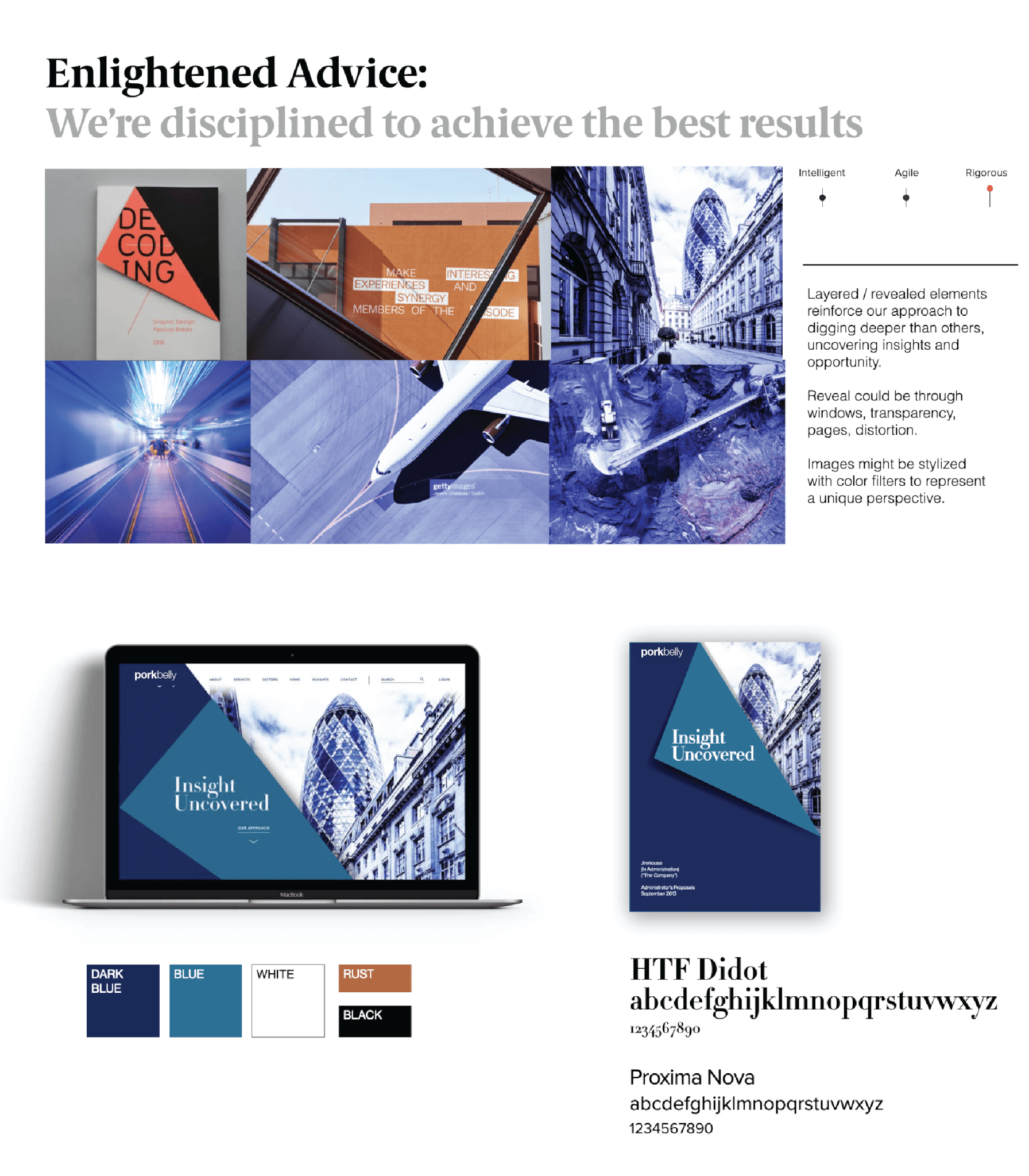 At Decker Design, all of our design activities and choices flow from our initial, research-driven strategy phase. During the strategy phase, we uncover each firm’s key differentiators. We then translate those differentiators into a set of guiding principles — such as intelligent, agile, and rigorous — that the entire firm can agree upon and align around.