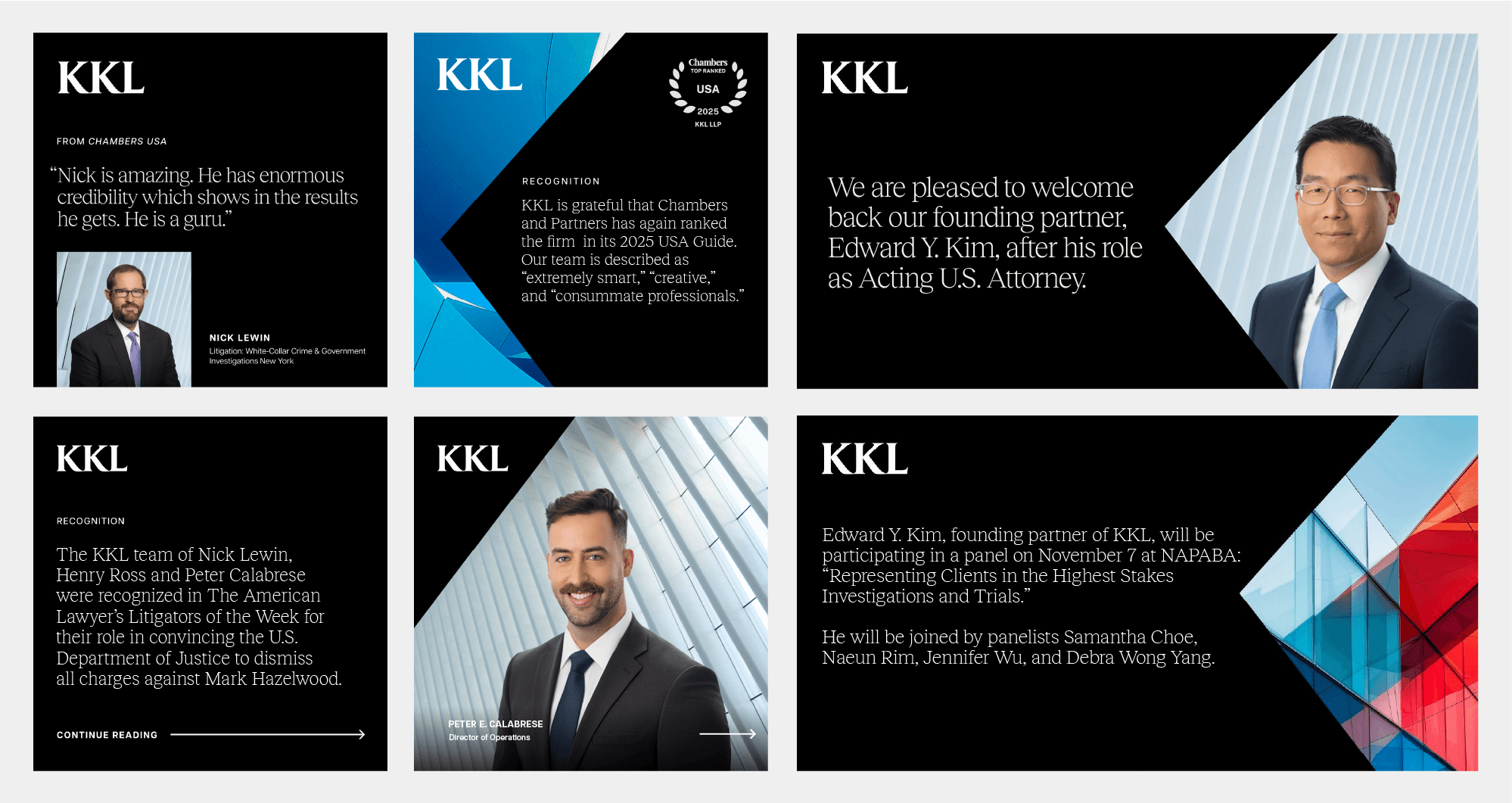 KKL’s strong reputation in white-collar enforcement—rooted in its partners’ senior SDNY experience—overshadowed its broader capabilities in civil litigation and internal investigations. The website failed to convey the firm’s sophistication, culture, or trial acumen, leaving referral sources and global clients with an incomplete and outdated understanding of what KKL truly offers.